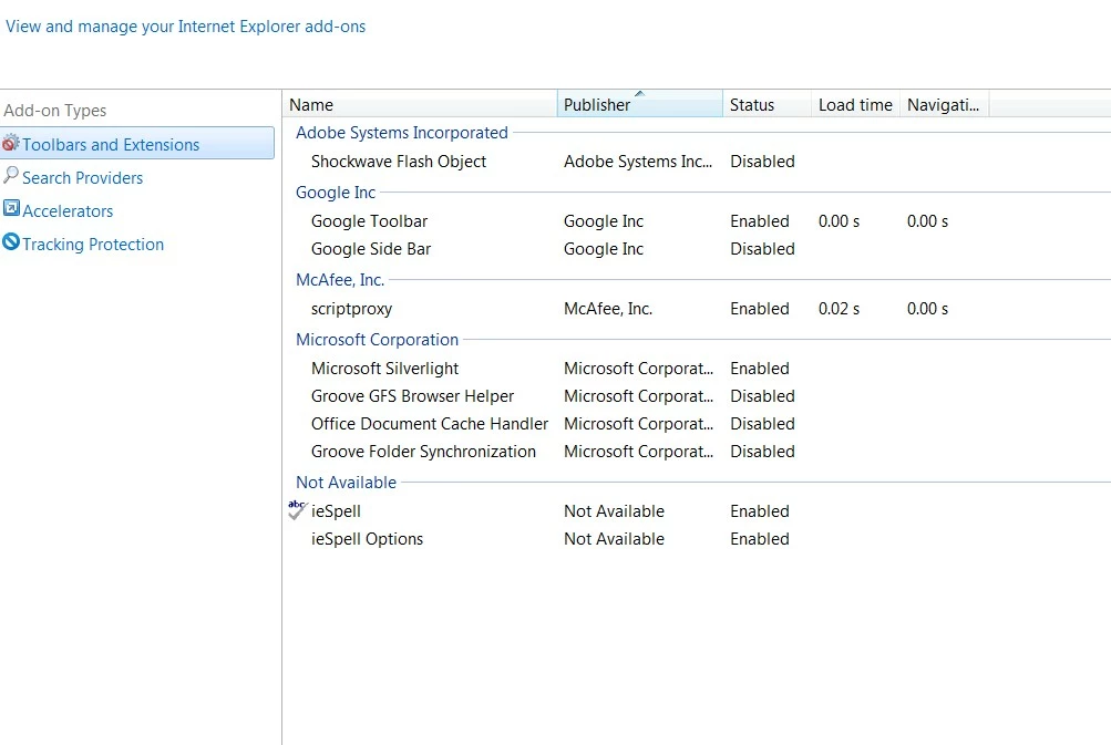 The snapshots were just to show that Shockwave and Flash were both installed (all add ons) but that only Shockwave flash is  currently loaded. When I go to dslreports.com I must disable shockwave flash in order to stop the error message.  There is no check mark showing on Active X filtering.