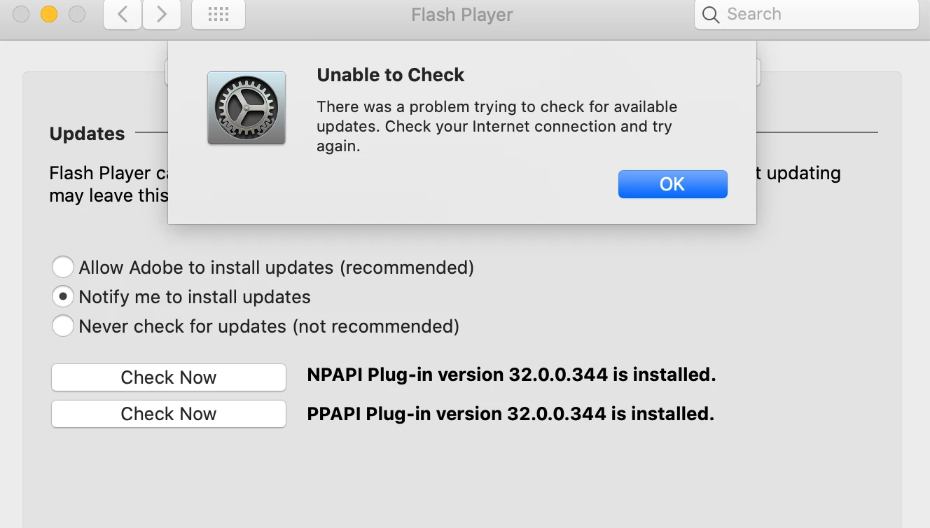 Unable to check for Updates- Flash Player 32.0.0.344 on Mac OS X