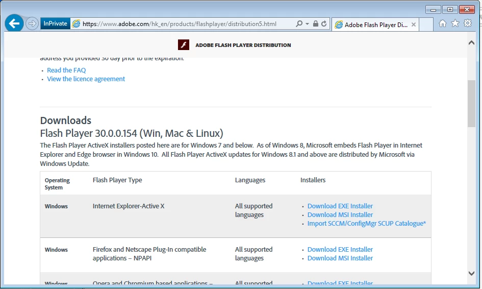 We are unable to download the adobe flash player Offline MSI through the below links.