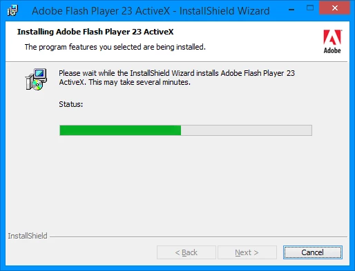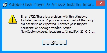 Unable to install Adobe Flash Player ActiveX 23.0.0.207...