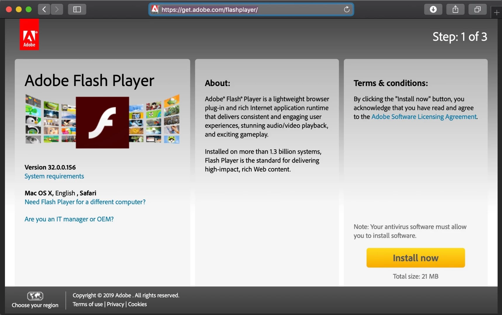 1. Download the uninstaller posted at uninstall_flash_player_osx.dmg