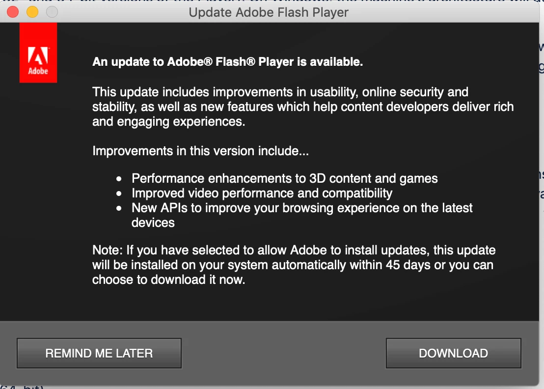 "The version of 'Adobe Flash Player' on your system does not include the latest flash update and has been blocked. To continue using "Adobe Flash Player", dowload an update version."