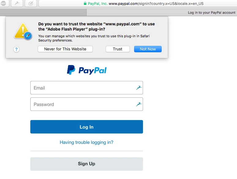 Why is Safari asking me to allow Adobe Flash Player for unexpected sites (e.g., MacRumors, PayPal)?