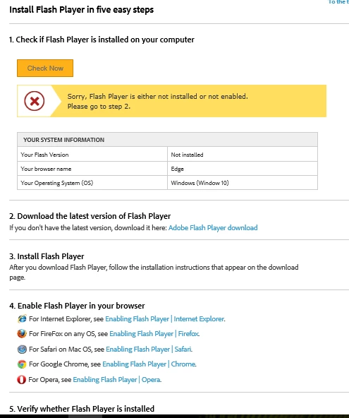 However, I still cannot use it on IE it says I need a more recent version of Flash player, but my PC is up to date! I have also enabled active X controls, shockwave flash object is enabled under manage add ons, under internet options and security, scripting is enabled and I have turned off active X filtering for this site as advised by your forums. Still NOT working!!!! Help!