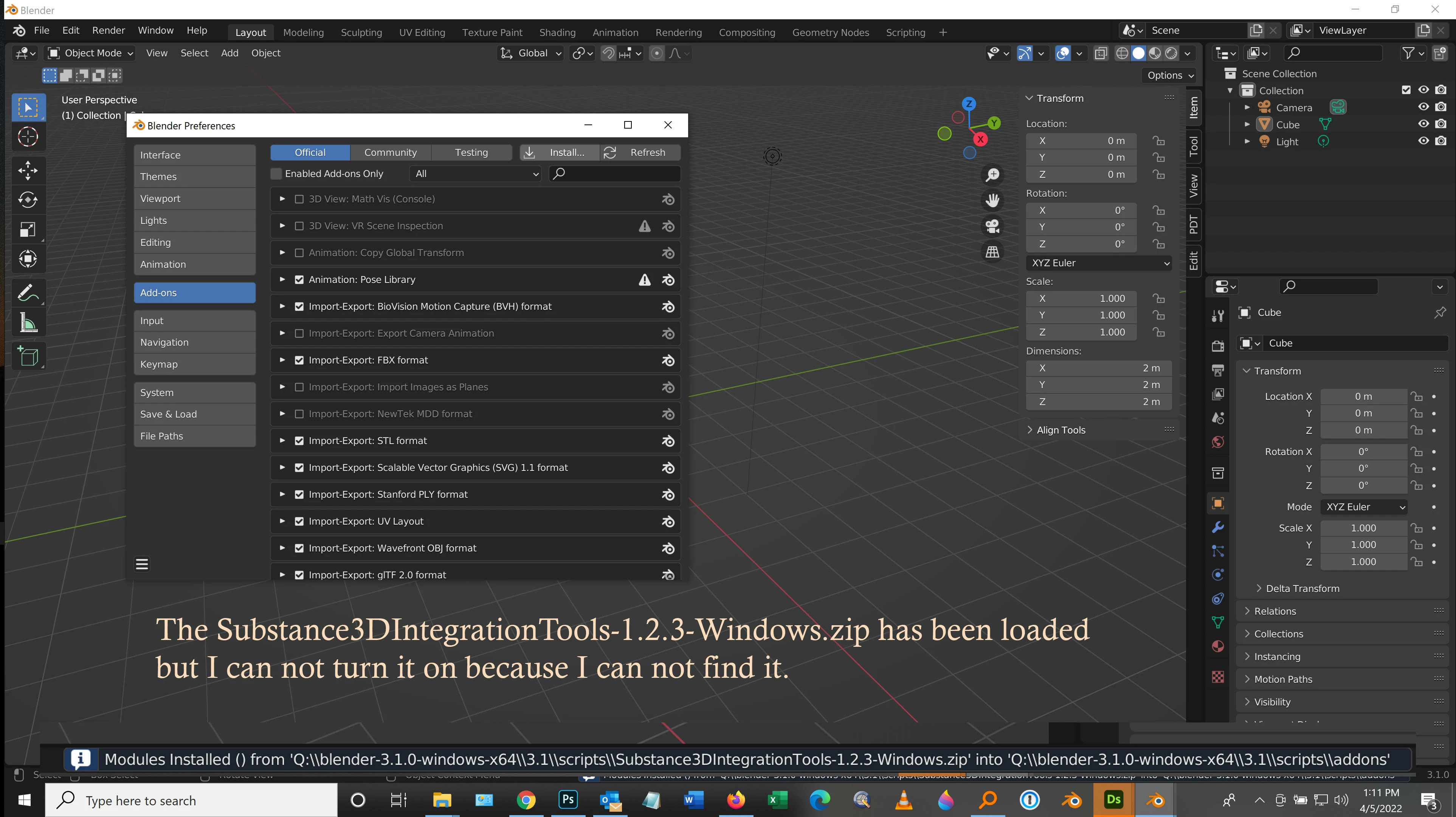 Blender Addon for substance painter - cant find addon after install