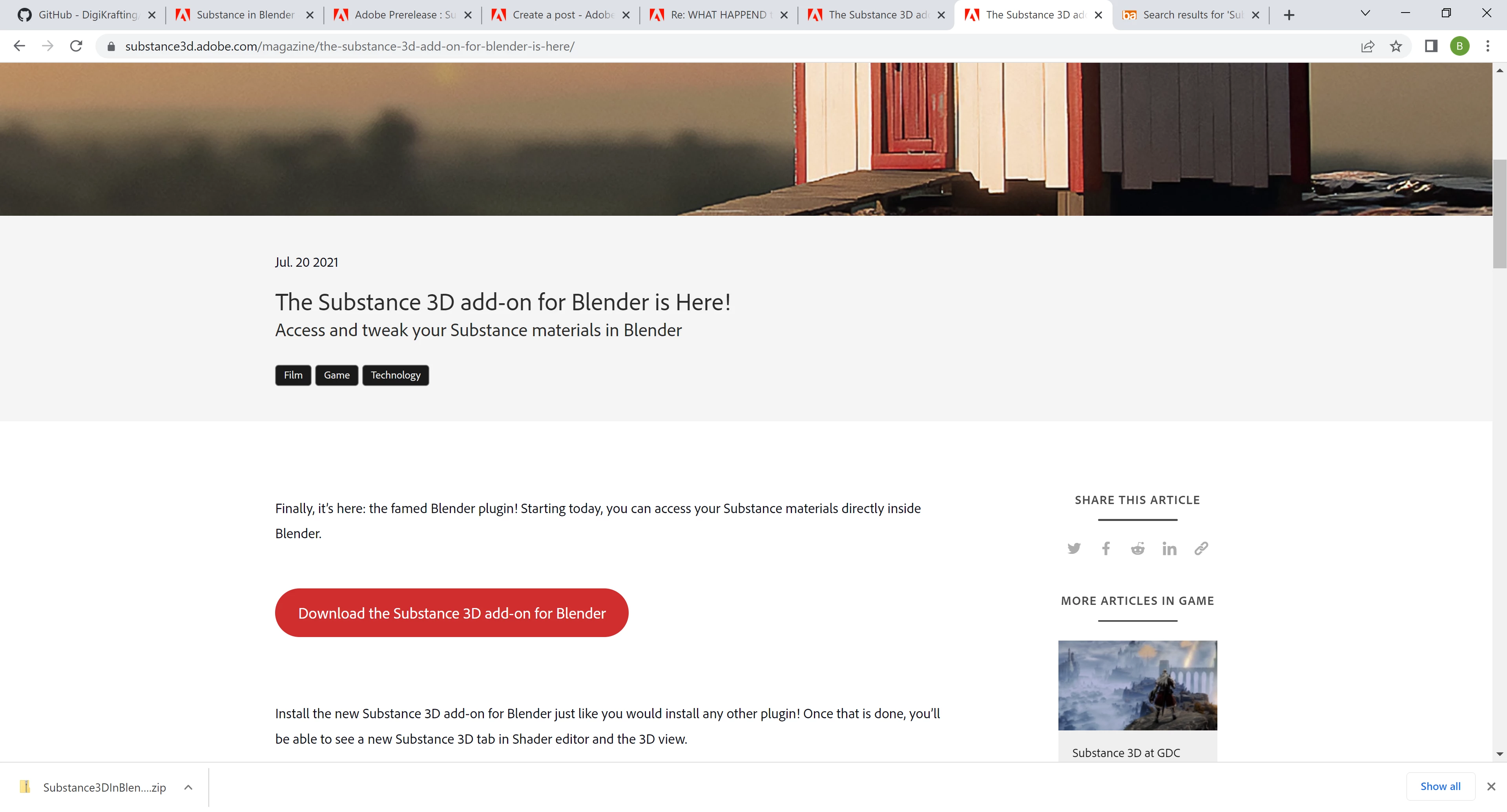 I saw windows and I saw download and I got the addon that the link said I was getting I did not realize that there is also an intigration package. A note that said Substance3DInBlender-0.16.0.zip must be installed first. It might prevent this progect from getting a bad rap. If a person is in a hurry they wont notice they are installing the wrong package. The link did say I was going to download the blender addon and I went for the jugular and got it in a rush. The addon works its just easy to get the wrong addon first if you dont read the instructions carefully.