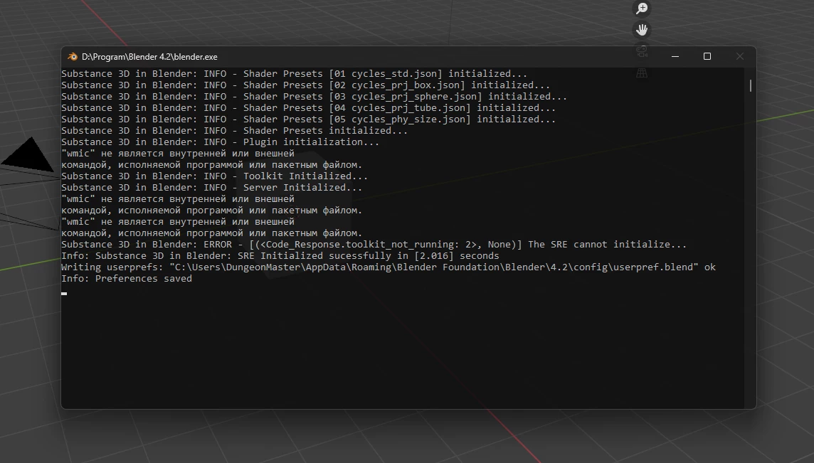 When you click the download button, this appears (Substance 3D in Blender: SRE Initialized sucessfully in [2.217] seconds)
