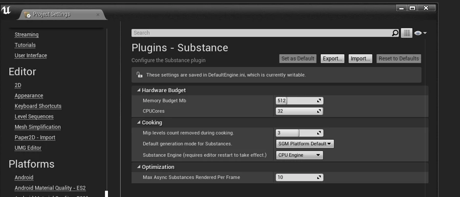 The previously exposed Substance Generation Methods in both project and per-substance factory are no longer exposed in UE 4 or UE 5. How do we get control of the runtime Substance generation methods for the game?