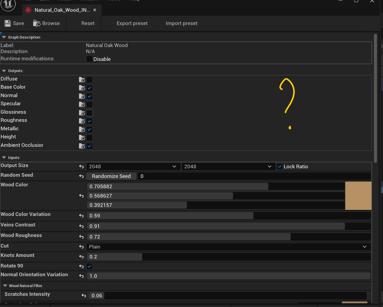 I download this Natural Oak Wood in substance 3d asset. there're Preset however I could not fild the field of Preset in UE5. Need advice