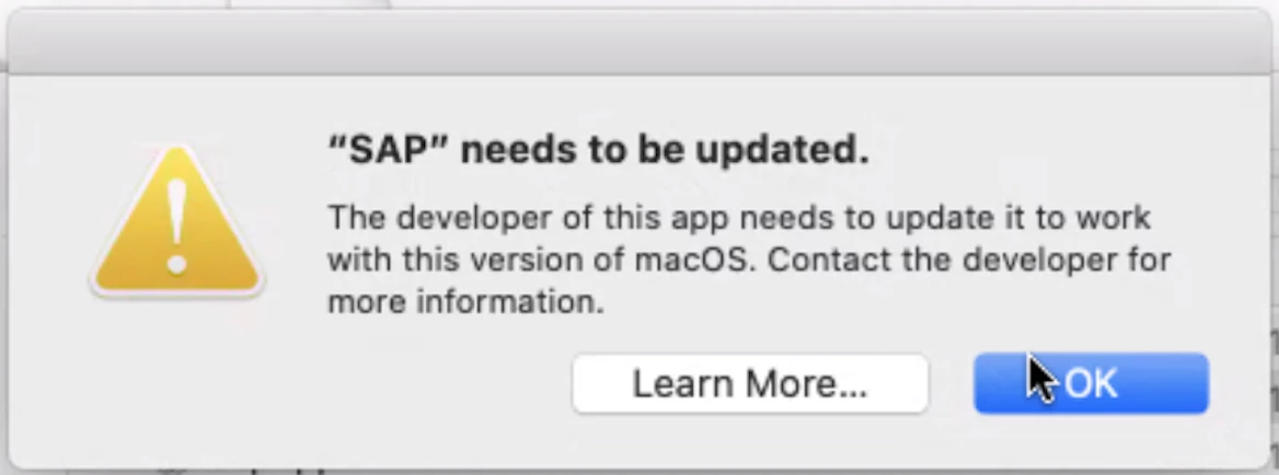 The developer of this app needs to update it to work with this version of macOS. Contact the developer for more information.