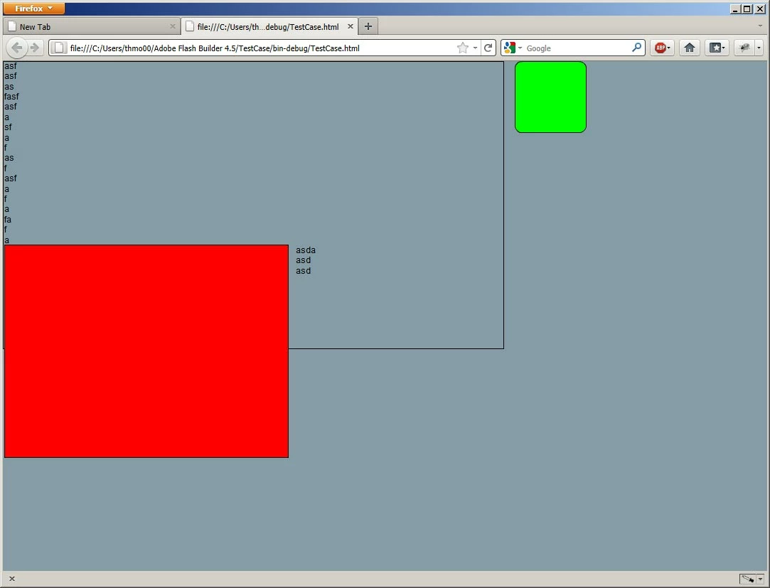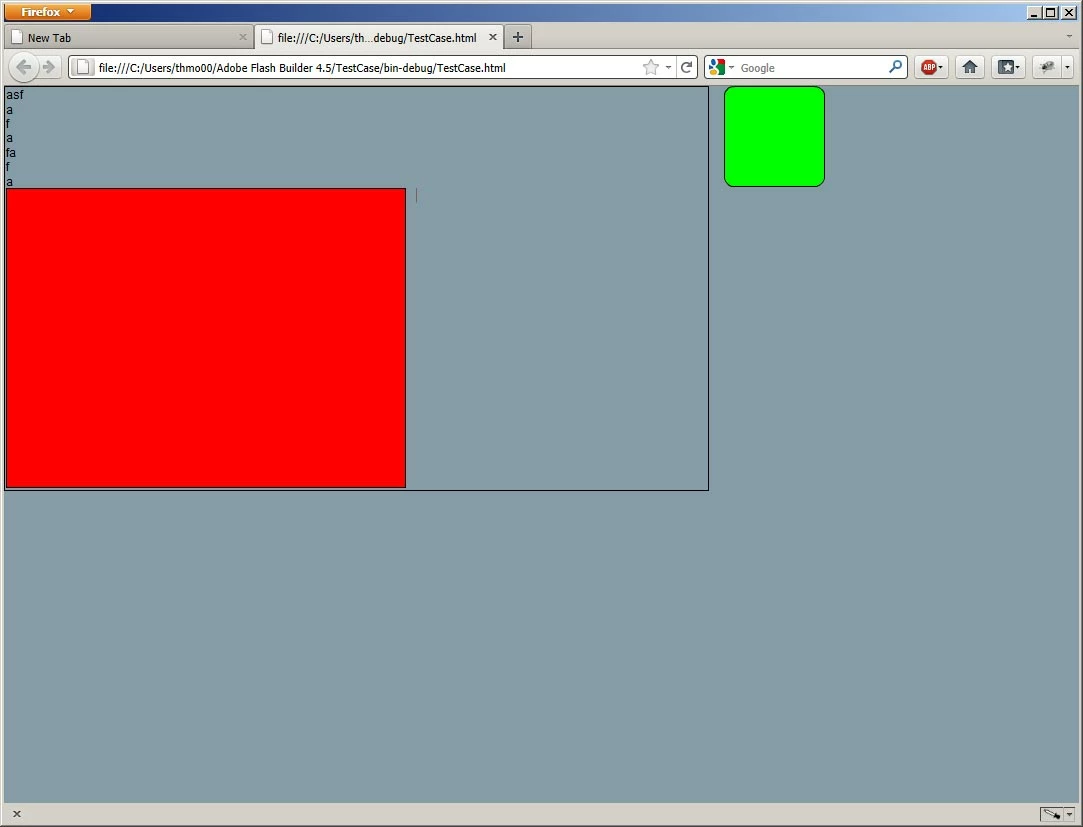 1. Fire up the TestCase project. It contains a square marking the size of the text area, and a simple button on the right.