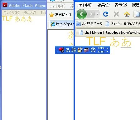 public class JpTLF extends Sprite { public function JpTLF() { var textMarkup:String = "<flow:TextFlow whiteSpaceCollapse='preserve'" + " xmlns:flow='http://ns.adobe.com/textLayout/2008'><flow:p><flow:span color='0xffcc33'" + " fontSize='20'>TLF</flow:span></flow:p></flow:TextFlow>"; var testTF:TextFlow = TextConverter.importToFlow(textMarkup, TextConverter.TEXT_LAYOUT_FORMAT); testTF.locale = "ja"; var controller:ContainerController = new ContainerController(this, 200, 200); testTF.flowComposer.addController(controller); testTF.interactionManager = new EditManager(); testTF.flowComposer.updateAllControllers(); } }