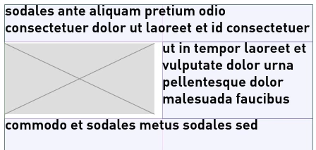 We want to implement text wrap like you have in InDesign, ie. text wrap around an image that has a fixed position on page as opposed to floats that has a fix position in the text. I have a version that works fine as long as the objects to wrap around cover a whole column. If object to wrap around covers only part of the column, I create three containerControllers, one above, one to the side and one below. That also works. Almost. Line heights between those containers end up wrong as my containers have a fixed height and there can't be a conditional check if line fits or not. See attached image - the purple lines and fills show extents of containerControllers for debugging purposes.