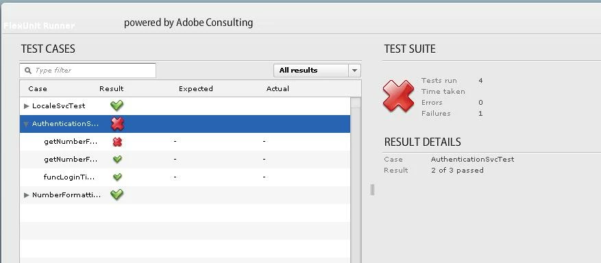 I have 3 test class out of which 2 test class is fully passed. But the class which fails has 2 methods. In the failed class 1 method is failed and 1 is passed, but when i check in the flexunit UI it says for the failed class as Result: 2 of 3 passed. But there are only 2 methods, It counts that as passed as well as failed. Can anyone tell me the reason. For reference i am attaching the screeshot.