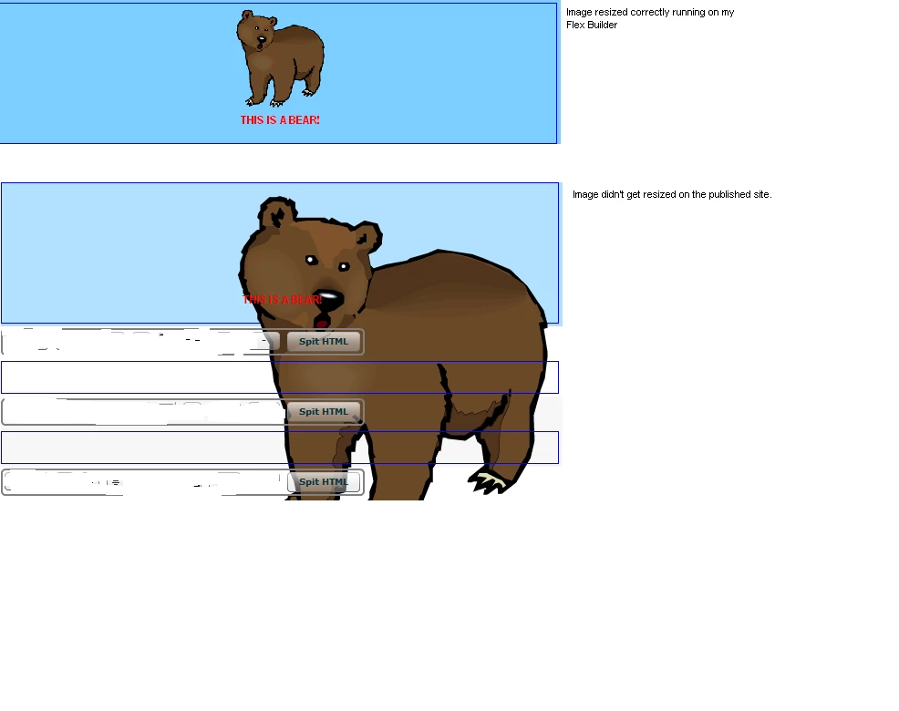 In my Flex builder, everything is working fine and dandy (e.g. image is being displayed based on the specified width and height - see the first picture below) then when I published it, the image doesn't follow the specified width and height at all (see the 2nd picture).