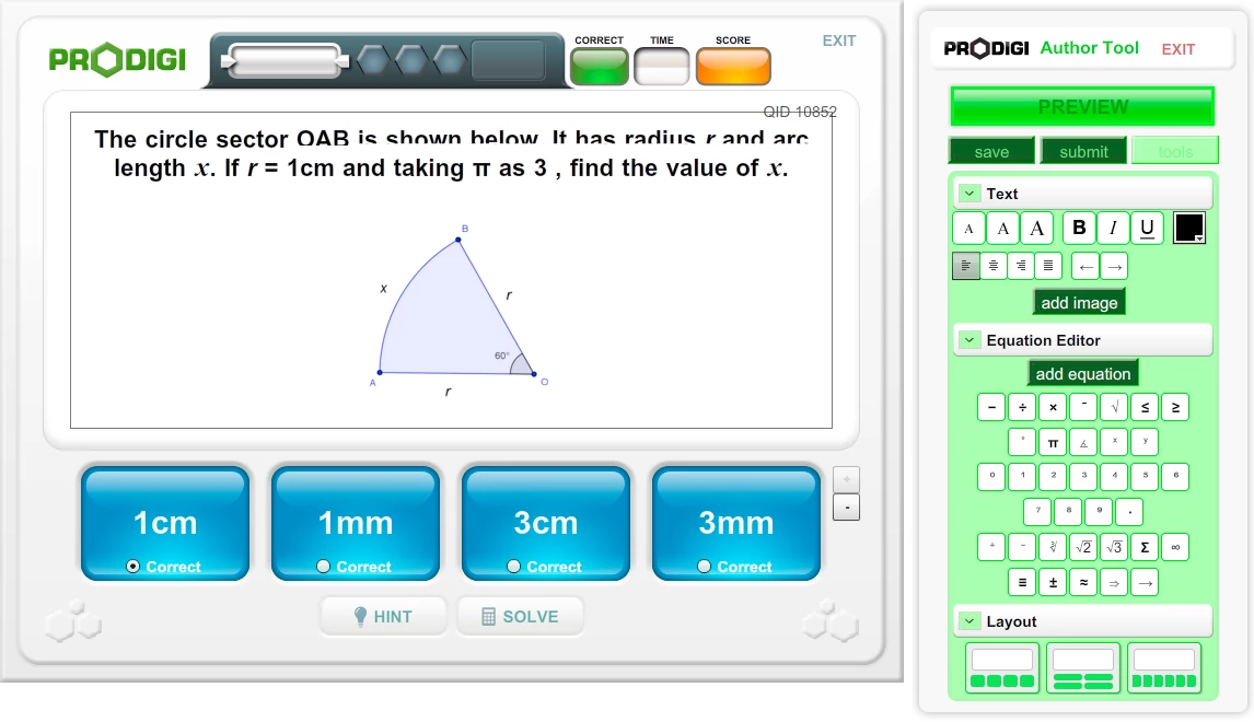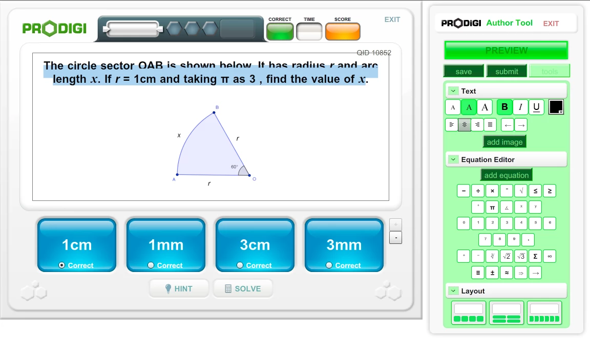 The app enables Maths authors to write questions like the one shown in the attached screengrabs.