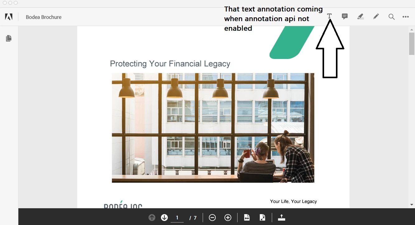 So why text annotation icon is not showing on enabling the annotation API in adobe embed API?