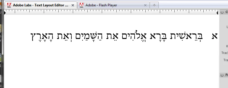 When using Hebrew with diacritical marks (and these are common), the kerning is not correct. Each diacritical glyph is made in a space after the character. (This did work with TextField). I tried setting Kerning ON, but that did not help.