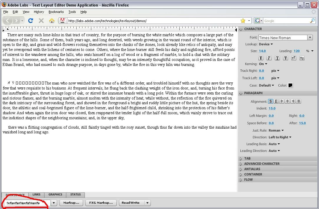 Some screenshots done in demo TLF site http://labs.adobe.com/technologies/textlayout/demos/