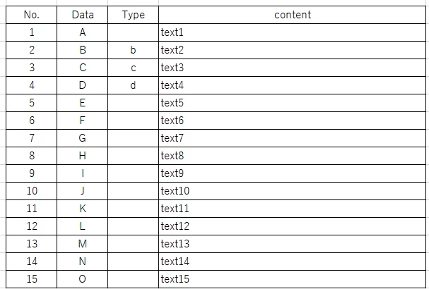 ただ、タイプ列の情報は、No.2~4のみ必要となります(添付参照ください)