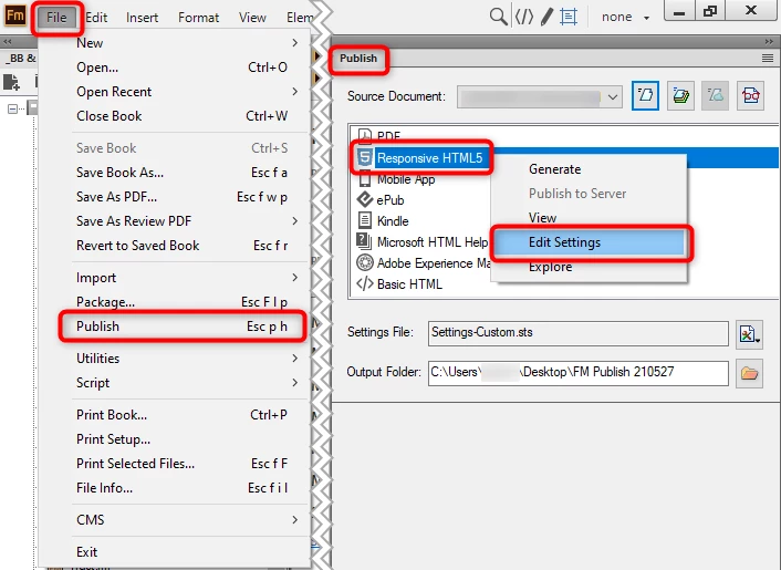 From FM, I am publishing to Responsive HTML5 in the FILE > PUBLISH menu.
