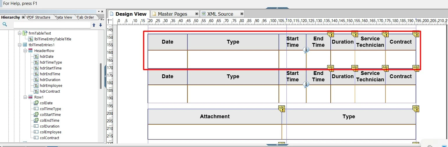 var tableRows = xfa.resolveNodes(“FormServiceRequestConfirmation.bdyMain1.frmTimeEntries.tblTimeEntries1.Row1[*]”);