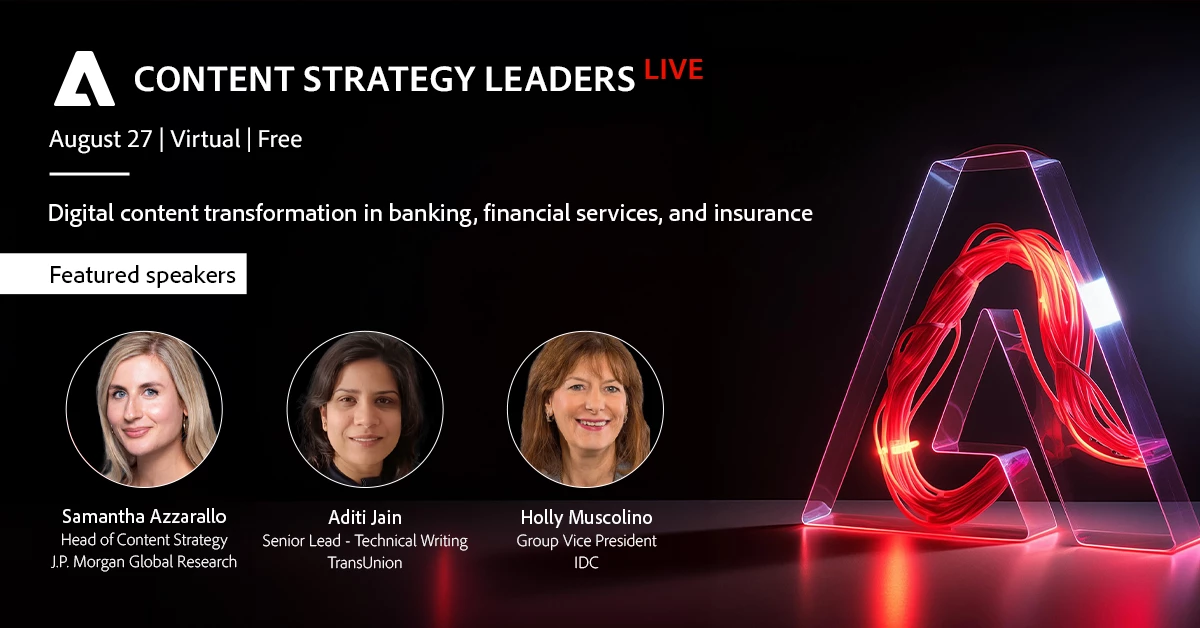 Join us for an exclusive event for content professionals in banking, financial services, and insurance. Gain insights on digital transformation, artificial intelligence (AI), and structured content management.