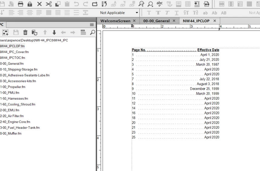 - On an automatically generated list like this, can I format it to populate a table (in this instance with 2 columns: Page No and Effective Date)