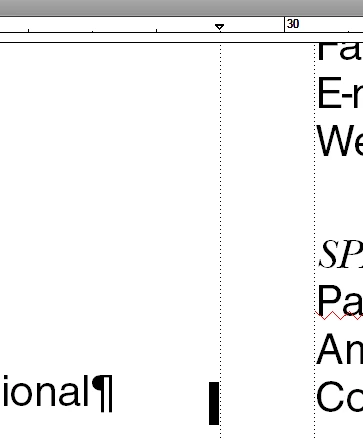 Black bar (gremlin) in text frame