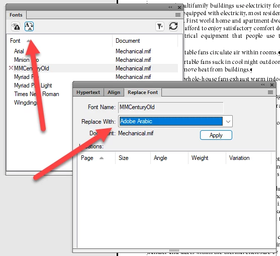 o unavailable font. Somewhere in the file there is text with a font which you do not have on your PC. You have to check, if this affects the display in your file. Open the Font panel in the View menu. There are all fonts listed. Fonts can also be used on reference pages ore master pages or in the definition of a table format. You can also search for "unavailable font" in this forum, as lots or people had already asked, what they should do.