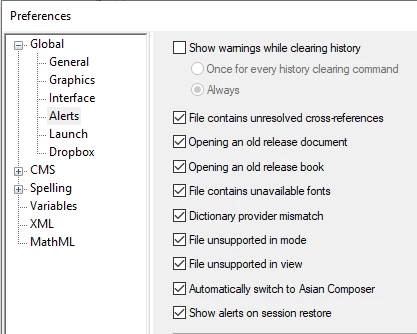 Regarding the Cross References.... There is also a Cross References panel, which can be found here: View->Panels, Cross References. As with the fonts panel, broken cross references will display with a red x. You can click on the broken reference in the panel and be led to the occurrence of the reference. Fixing the reference is a matter of finding the marker or paragraph referenced.