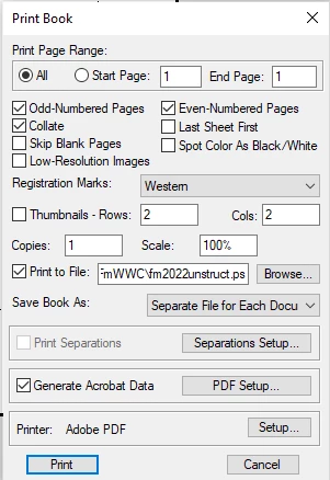 Back in the day, when you would PDF a book, there was an option to create separate files from each file in the book. This was done I believe through the distiller process. Now, Frame distills files natively, and I no longer see this option. Is there a way to do this? I have literally hundereds of forms that are created that I want in separate files, and this used to be so easy, but now, I can only figure out to open each file and PDF them, which is suuuuch a waste of time when I know I could do this before! Help please ❤️ I can't find anything about this feautre anywhere.