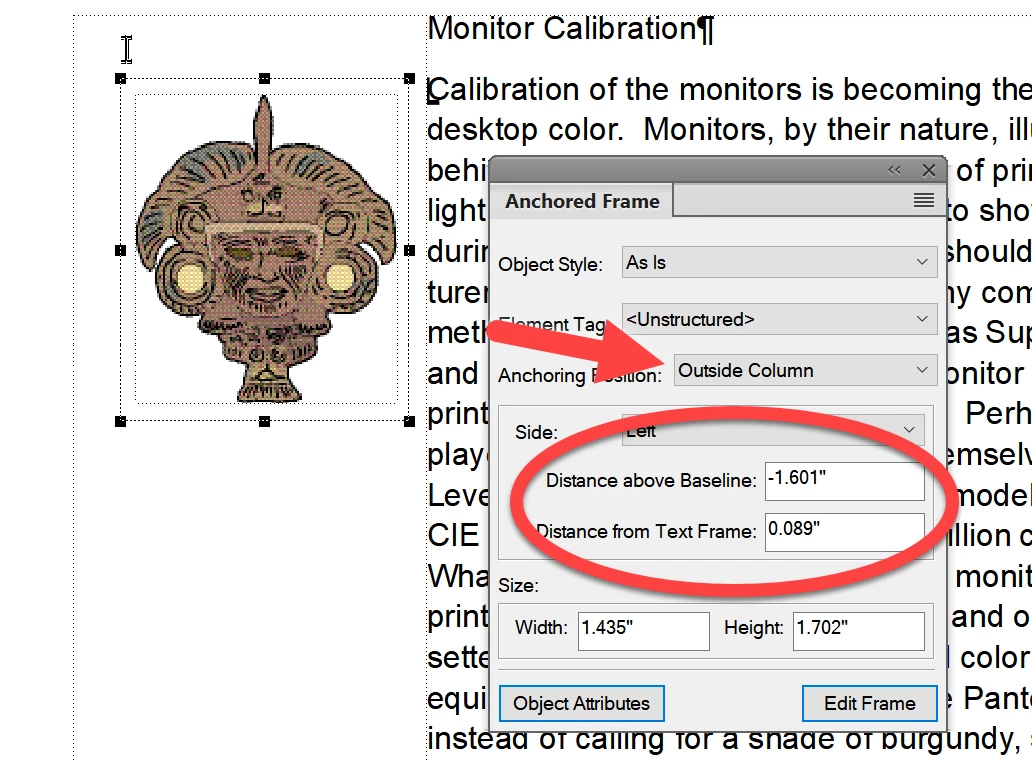 Can a graphic be anchored to a line of text but be OUTSIDE the text frame?
