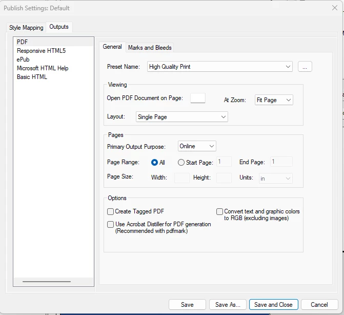I ran across a peculiarity while I was trying to export a couple of two-page FM files to PDF. In each FM file, one page was blank and the other had a full-page Photoshop .psd graphic. (These are the front and back covers of a book .) No matter how I tried to create the PDF (Save As PDF, Print to PDF), the routine would hang on the page with the graphic and I had to go into the task manager and kill FM. The .psd files were imported by reference and were reasonably large, as one would expect of full-page Photoshop graphics with layers. (One was 66 MB, the other was 48 MB.)