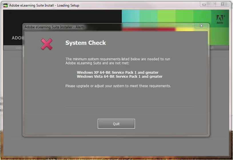 However, now when I try to re-install, it goes through the "System Check" and gives me the message below and won't allow me to install. Has anyone experienced this and is there any ideas on how to fix this or get around it?