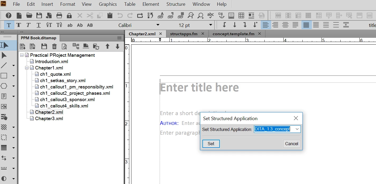 I am trying to create a book using structured authoring. My ditamap currently looks like this: