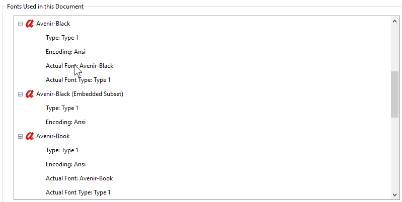I was asked to reformat some documents, using the Avenir font family. I updated the FrameMaker file, thought my work was done, saved it as pdf and sent it to my coworkers. It turns out the pdf had different fonts displayed on Mac and PC, with PC showing the intended fonts, and Mac replacing them. I checked the pdf properties and the log file, and it appears as though some of the Avenir fonts are not able to be embedded.