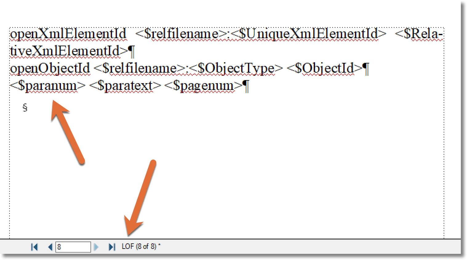 - Navigate to the LOF Reference page (likely the last one, but not always.) Confirm the page by looking at the status bar. See screen shot, below: