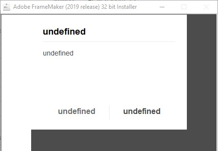 I downloaded the Zip file for Update 5 of FrameMaker 2019 (32-bit), but when I launch the .exe file, a completely empty dialog box titled Adobe FrameMaker (2019 release) 32 bit Installer opens.