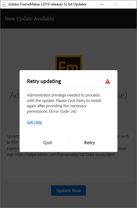 Cannot update FrameMaker 2019 to Update 5