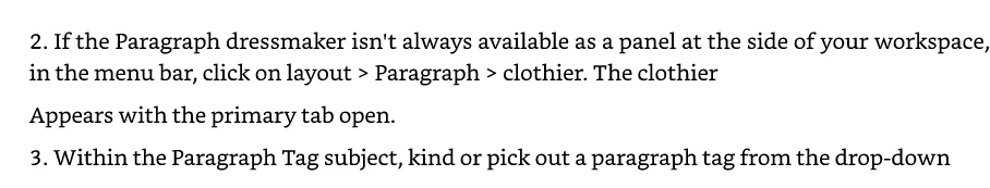 I found this troubling, as I've not got the Layout > Paragraph > Clothier in my Paragraph Dressmaker.