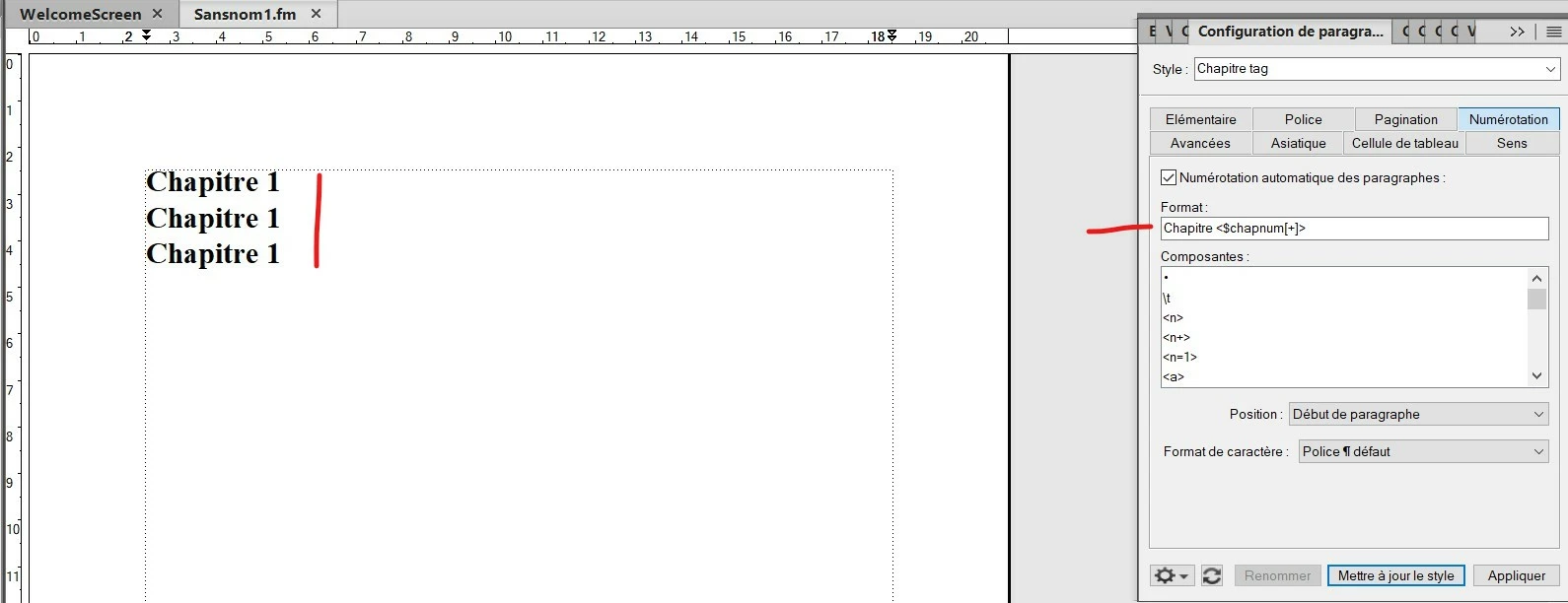 In a single FM document, I have tried to make a chapter numbering, but the chapter number is always at "1" for all chapters. Why ?
