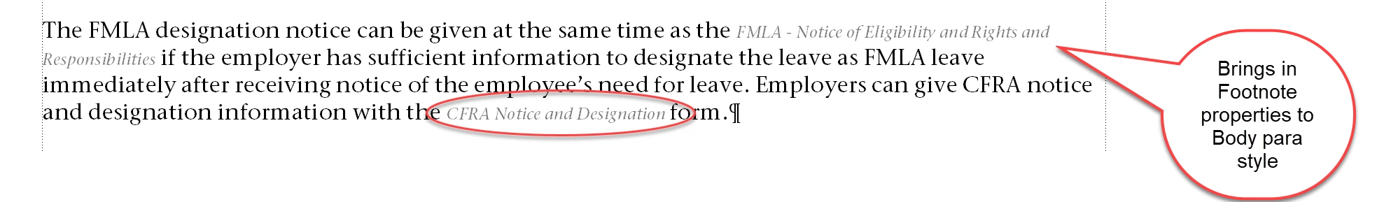 We also use the emphasis character style in the main text, which for decades had worked just fine. However, now -- in just one file, applying the emphasis character style anywhere in the body, it brings in the properties of the footnote paragraph style. Previously it would simply ital and leave the other paragraph style properties as-is.
