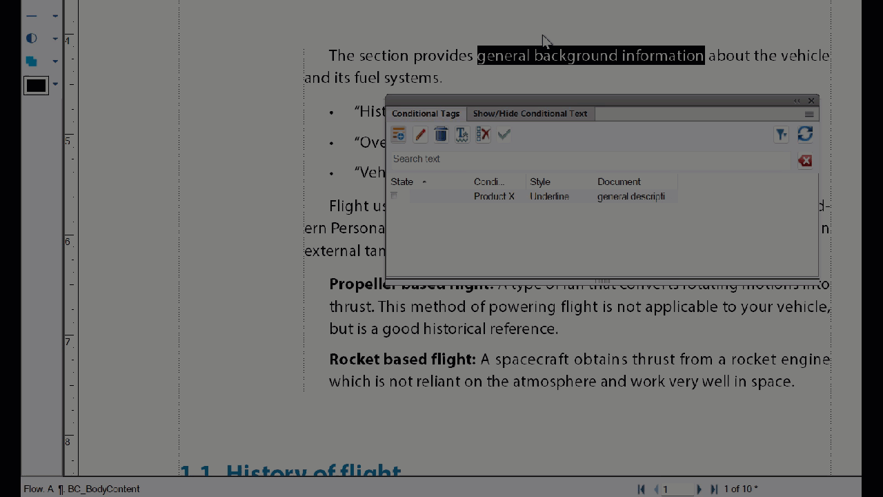 I have followed the procedure as indicated in the Help content for adding conditions to text. I can see the text that has the condition I applied, but I also see the original text in the document that does not have the condition tags applied.