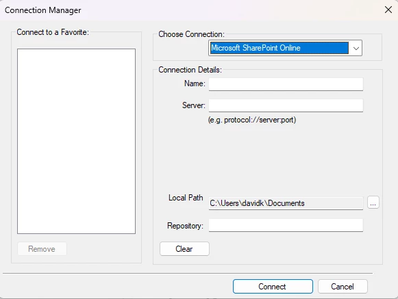 I was working with IT to investigate a potential security issue with providing the Sharepoint details and paths to files that are required in the Connection Manager.