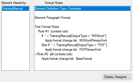 When I use the TrainingManual Element, no matter which Attribute option I select, the Context Rule is ignored: