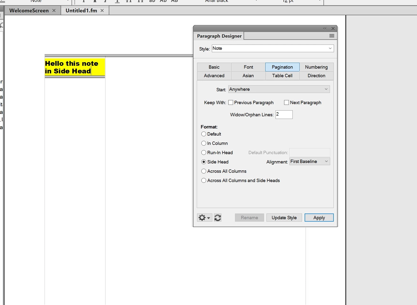 I just created a new paragraph style called "Note" that puts the text into a side head. If I click on the note, I keep getting a message that says "Couldn't find tag: Note." I've tried deleting the paragraph style, closing and re-opening FrameMaker, and creating the note style all over again, but that doesn't seem to help.