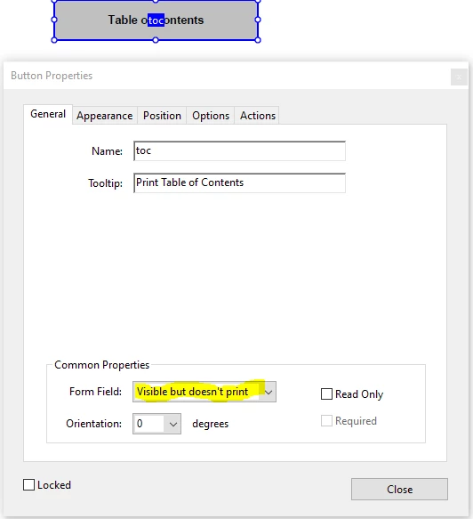 I have a Parts Manual that has a "Table of Contents" heading on all pages for the online pdf manual which is stored online for dealer access. I would like this heading to disappear once a person prints the document. Is there a way to designate this header as a "non-print" by still visible, so I only have to create ONE manual. Many people find it confusing on the printed version, since it appears on all the pages, but has no function on the actual printed manual that gets mailed out.