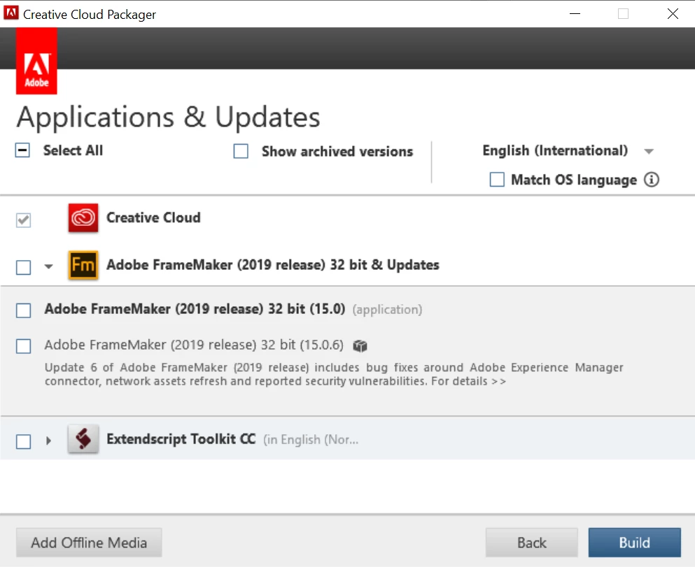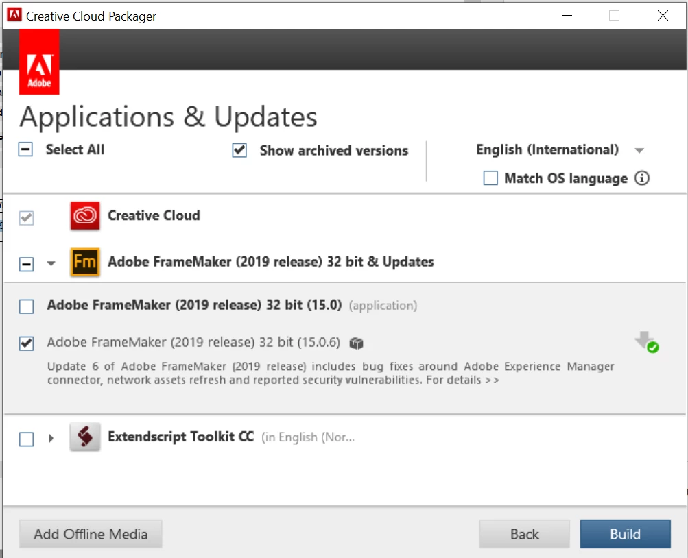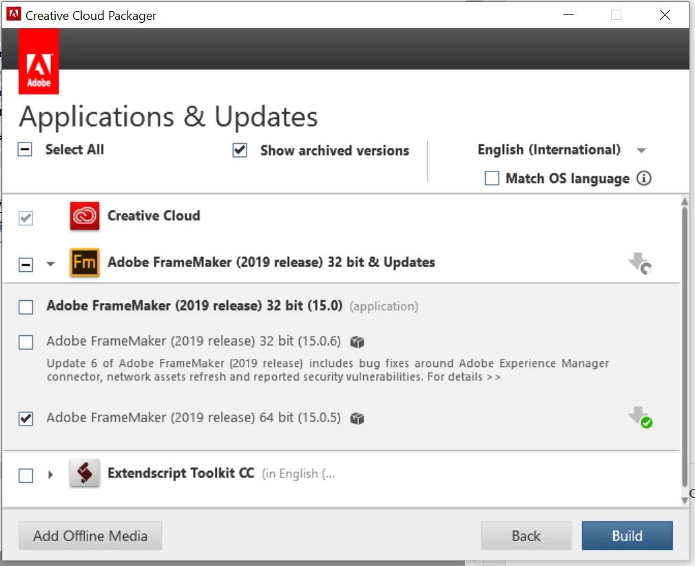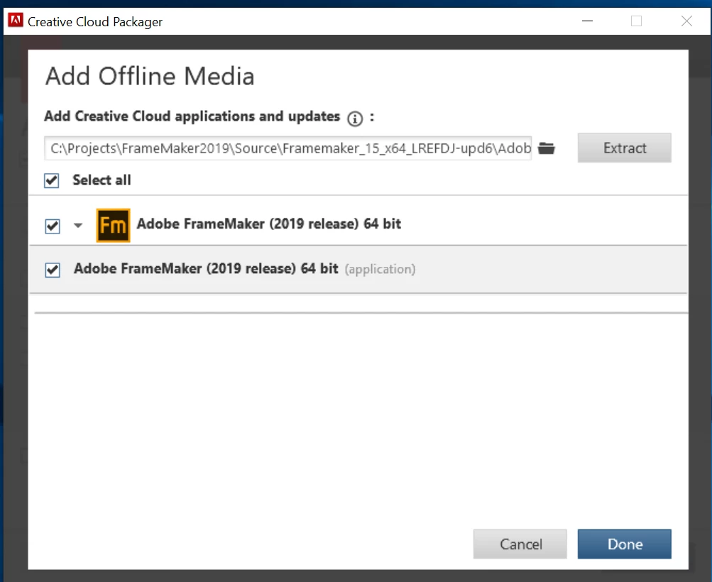 Creative Cloud Packager using Enterprise Licensing does not recognize FrameMaker 2019 X64 Update 6