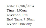 I know I can create it as a Text Flow B, with the relevant elements for Date, Time, DOW and Duration, and manually enter these, then use Conditional Formatting to hide these when creating the final output. I also know that FrameMaker can't do calculations, e.g. add the duration to the Time to populate the End Time, using that as the Time for the next event.